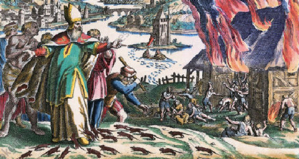 Mittelalterliche Strafpredigten wirken bis heute, wie Totentänze beweisen. Die 1493 und öfter gedruckte schedelsche Weltchronik überliefert in Wort und Bild, dass der unbarmherzige, 913 verstorbene Mainzer Erzbischof Hatto von wutempörten Mäusen gefressen wurde.