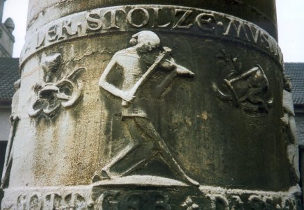 , Gertraudenfriedhof: Reliefzyklen von Paul Horn an den Säulen vor dem Krematorium, 1919.