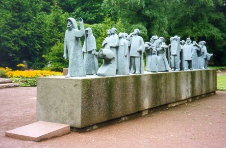 , Gertraudenfriedhof: Figurengruppe aus Steinguss von Richard Horn, 1968-1980.