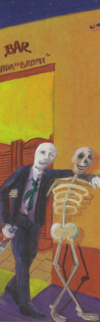 In der Galerie Frank Schlag in Essen zeigt Alexander Braun eine Serie von "Retablos", die 2008 und 2009 nach seinen inhaltlichen Vorgaben von Alfredo Vilchis gemalt worden sind. Der Knochenmann ist immer dabei.