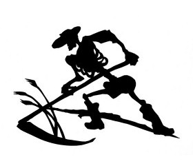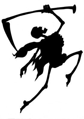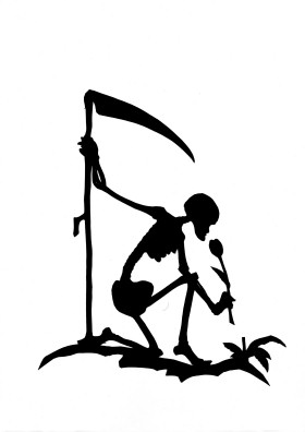 Die demnächst ausgestellten rund 150 Werke bilden Hartmut Klugs Totentanz-Zyklus. Seine ganz persönlichen Vorstellungen vom Auftreten des Todes sind mal witzig, mal skurril und mal erschreckend, aber stets zum Nachdenken anregend. Da wäre beispielsweise das Skelett, das sich vor dem wütenden Stier auf einen Baum flüchtet. Oder jener in Zuneigung entflammte die Blume pflückende und dann über ihr Welken betrübte Knochenmann. Dem Geheimnis des Todes nähert sich der Künstler auf populäre Weise, inspiriert von Gedichten, Erzählungen und Musik. In einigen Bildern experimentiert er mit Mischtechniken, indem er den reinen Schwarzschnitt in eine Collage hineinsetzt oder mit Zeichnungen ergänzt. Oft beziehen diese sich auf Berichte und Bilder von erschütternden Geschehnissen in der Welt.