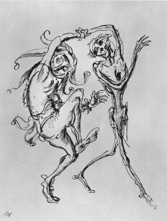 Feder- zeichnung aus den 50er Jahren, zeigt den Tod im fröhlichen