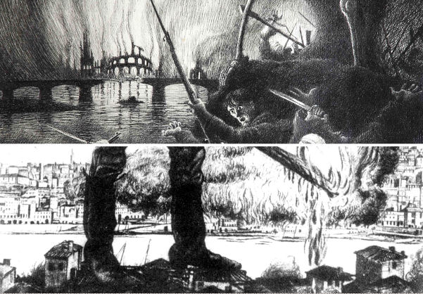 Hofkirche und anders mehr. Ohne Zweifel handelt es sich dabei um eine Antwort auf die Radierung Der Tod als Brandstifter seines Lehrers. Aber der Schüler emanzipierte sich,