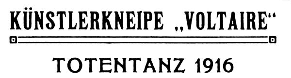 Der "Totentanz" von Hugo Ball dürfte im Sommer 1915 als Parodie auf deutsche Soldatenlieder entstanden sein. Das Gedicht, das sich gegen den Krieg, den Kaiser und die preußische Politik wendet, erschien 1916 auf dem Titelblatt der Januarausgabe der Zürcher Zeitschrift "Der Revoluzzer". Zum Schlager entwickelten sich die Verse, als der Verfasser gemeinsam mit Hans Arp, Marcel Janco und Tristan Tzara am 5. Februar das Cabaret Voltaire in der Spiegelgasse begründete. Emmy Hennings sang den fünfstrophigen Text zur Melodie "Der alte Dessauer Marsch".
