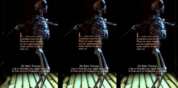 Am 1. November 2013 hat Peter Greenaway (*1942) höchstpersönlich seinen "Dance of Death" in Basel vorgestellt. Damals lief der Film in Endlosschleife auf 18 grabsteinförmigen Monitoren. Ein Exemplar ist in der christkatholischen Predigerkirche geblieben. AbhĂ€ngig von den Ăffnungszeiten stehen der Besichtigung nur Gottesdienste und andere Veranstaltungen im Wege.