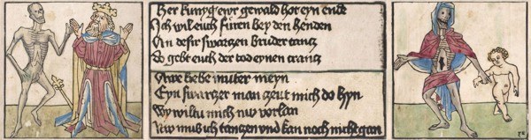 Zuerst war die "danse macabre". Makaber kommt über das Arabische aus dem Hebräischen und heißt nichts anderes als "bei den Gräbern", eigentlich passt "im Todesfall" noch besser. Schon vor 2000 Jahren hieß "schwarz" im Lateinischen "niger". Im Deutschen bezeichnet Neger seit dem Hochmittelalter ganz sachlich einen Schwarzen. Anders verhält es sich mit den Mohren, weil "morus" bereits in der Antike nicht nur für die (Haut-)Farbe, sondern auch für Albernheit und schlechte Sitten stand. Also, keine Angst vor dem Wörterbuch. Der schwarze Mann im Basler Totentanz ist eine Schreckgestalt, mit der man Kindern droht, oder aber ein Narr, ungebildet und faul zugleich. So dachte man damals. Heute haben wir es leichter, denn der nächste Lichtschalter ist nah.