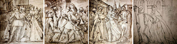 Was Fribourg 1927 bei der Freilegung mittelalterlicher Marienbilder verlor, bezeugen Aquarelle, welche die Mönche bis heute vor Ort aufbewahren. Ursprünglich waren 17 holbeinsche Szenen zu sehen, deren vierzeilige Verse im Laufe der Zeit niemand mehr lesen konnte. Während in fast allen Schweizer Totentänzen die Reihenfolge der Sterbenden vom Papst zum Ärmsten absteigt, ordnete Wuilleret geistliche und weltliche Todeskandidaten streng getrennt voneinander an. Abgesehen davon versetzte der Maler jeweils beide Eheleute durch Skelette in Furcht und Schrecken.