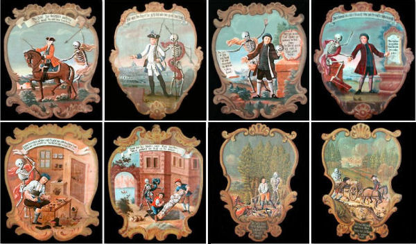 Das Severoceské Muzeum in Liberec, ehemals Nordböhmisches Museum in Reichenberg, verwahrt acht Totentanztafeln von 1760. Zeitweise hingen sie in Christophsgrund, dem späteren Kryštofovo Údolí. Weil der katholische Ort klein und arm war, musste die Kunst von anderswo kommen, wahrscheinlich aus der acht Kilometer entfernten Stadt.